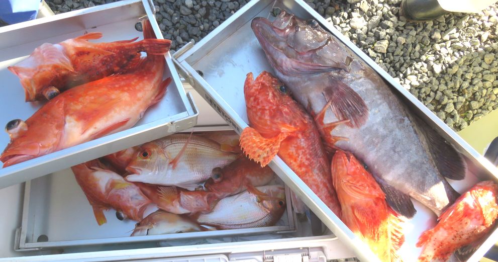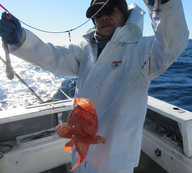 鬼カサゴ狙いで出船しました。朝内は風も有り、潮動かず当たり少なかったですが風も弱まったので沖へ出て何時ものポイントでボチボチ釣れて何とか土産をキープ出来ました。