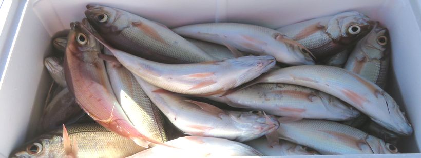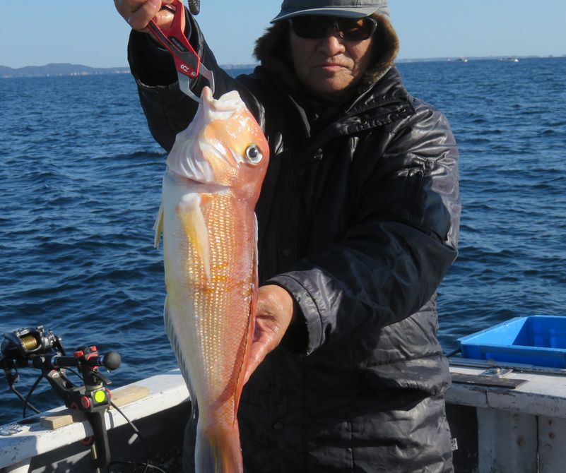 昨日は鬼カサゴ狙いで出船予定でしたが朝起きたら地震の臨時ニュースが放送されていて東北地方に津波警報が出ていたので延期しました。今日はヒメダイとメイチ狙いで出船しました、早かった潮も収まり少ししたら入れ食いに成り暫くは忙しい感じでしたが潮止まりで当りが嘘の様に止まりメイチ狙いに移動しましたが反応は良く出て居るのに当りが出ず終わり際に当りが出だしまずまずの釣果に成りました。明日も同じ魚を狙って出船するので期待出来そうです