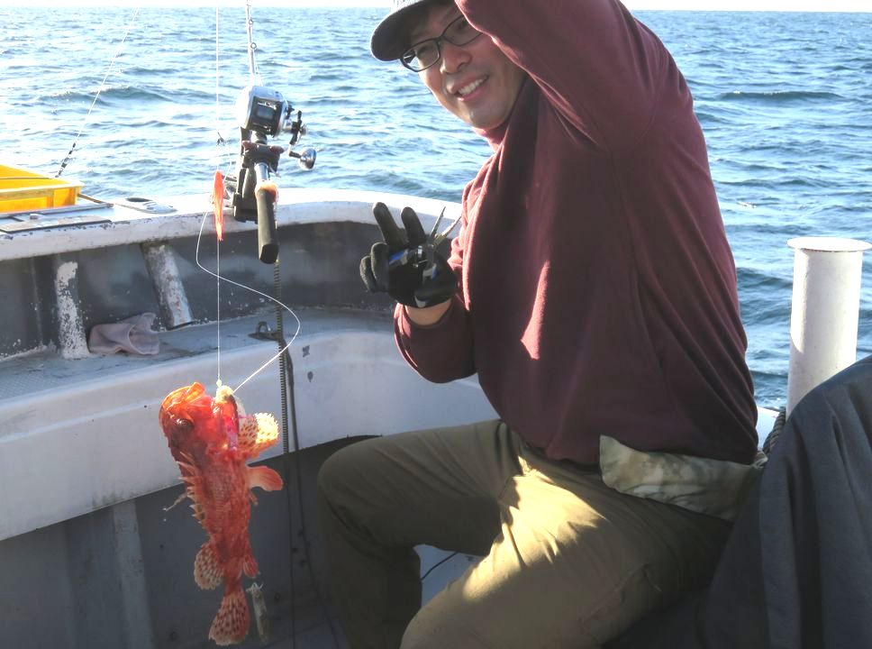 水温 20.2度 海上 北西の風 底潮 おもり150号 カツオの腹も ホタルイカ トントロ オニカサゴ カサゴ 八平 剛力 アマダイ ヒメダイ ヒオドシ レンコダイ でした