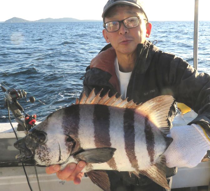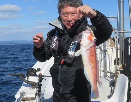 マダイ五目で出船しました。潮は流れて無かったですが、エサが効いて来たら行き成りマダイの当り出てホウキハタ イシダイと続けて当りボチボチ釣れましたが、潮止まりで当りも無くなり浅場に移動したら、上潮が動き出し当りが出て来て、土産をキープ出来ました。
