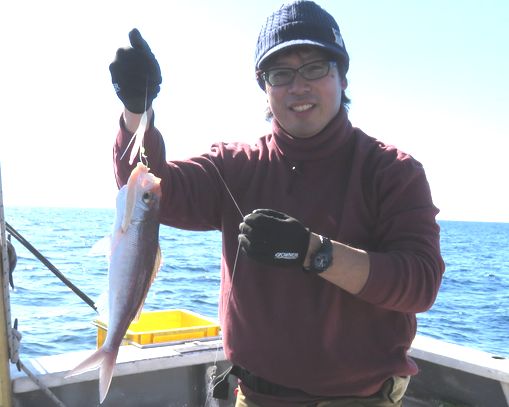 マダイ五目で出船しました。凪良く潮も流れて居て行き成りブリが上がり、イサギもボツボツ上がりましたが潮止まりで当りも無くなり辛抱していたら行き成り強烈な当りが出て中々上がらずぐいぐい下に引いて行くのでマグロかと手元まで来て隣とお祭りしてバレてしまいました