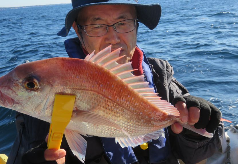 マダイ五目で出船しました。凪予報でしたが風波が有りクタクタしていて、昨日より多くの船が来ていて誘いを掛けるも全く反応無く又、巻き網でも入ったのかと昨日あんなに当りが出たのに嘘みたいで居た船も居なくなり諦めて浅場へ移動して何とか土産をキープ出来ました。