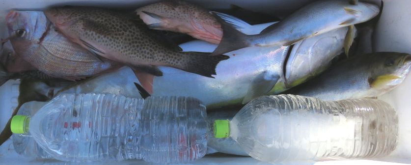ウメイロとマダイ五目で出船しました。潮が流れて無く、反応は良く出ていましたが、当たり少なくエサが残って来るとシイラが掛かって暴れるので大変でした。ポイントを変えたら潮が流れだし当りも出てまずまずの釣果に成りました。