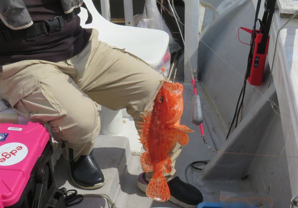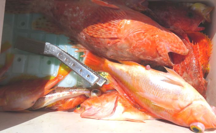 鬼カサゴ狙いで出船しました。凪良く潮も流れて良い感じでしたが最初はボチボチ釣れましたが後半、潮がぶっ飛び出しオモリを重くしても吹けてお祭りばかりで大変でしたが何とか土産をキープ出来ました。大きいのを捌いたら胃袋から未消化のトントロが出て来ました。