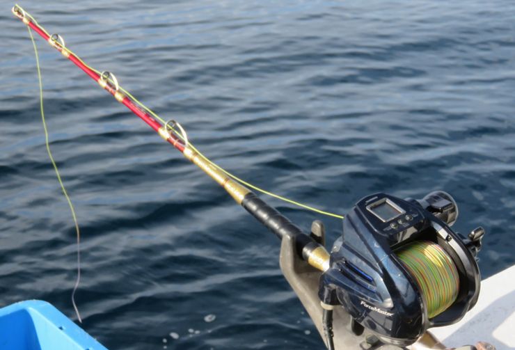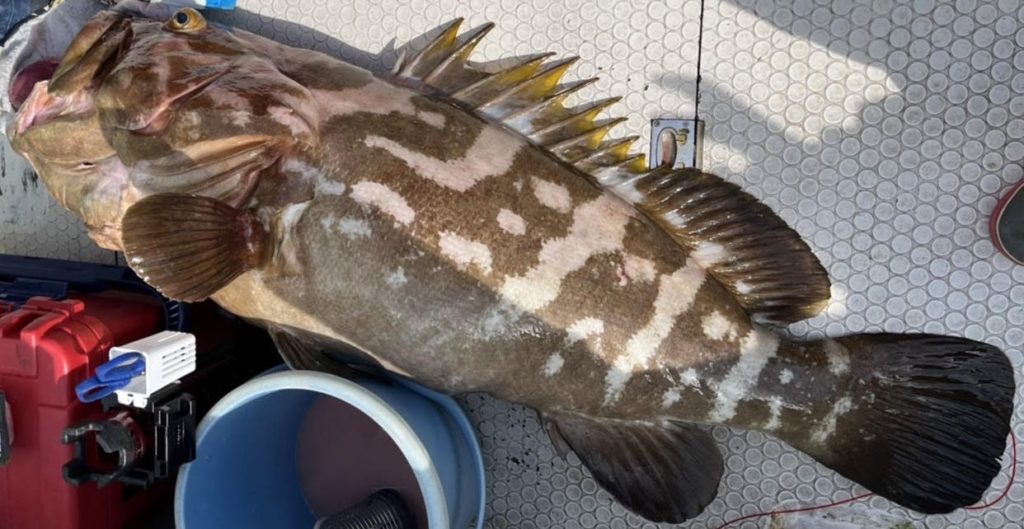 水温28.6度 海上 南西の風 うねり 真潮ぎみ オモリ120号 ハリス80号 クエ針30号 エサ 活けイサギ 冷凍スボタ クエ ウツボ でした